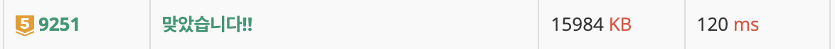 2. 문자가 같다면 이전에 저장된 값에 +1 (이전에 저장된 값에는 현재까지의 최장 부분 수열 길이가 저장)